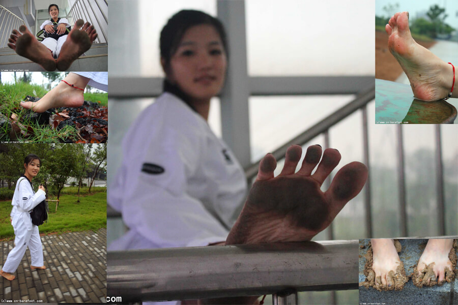 波波はテコンドーの道着を着て遊び、活動後は嬉しそうに足を上げて、日焼けした足の裏を見せました。