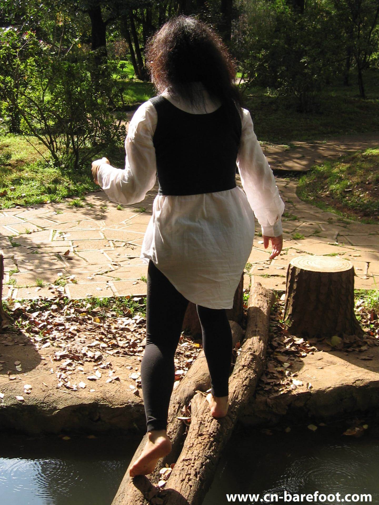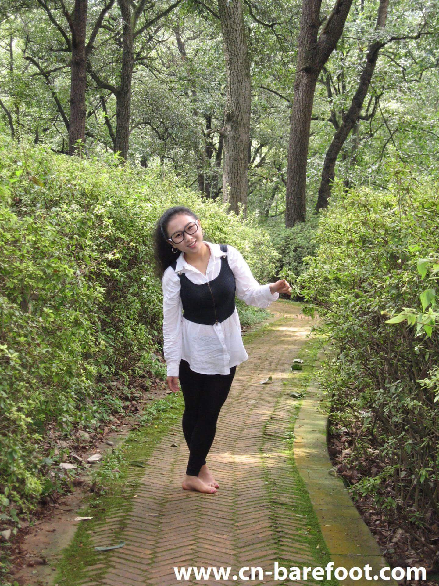 悠悠は公園で裸足で散歩し、細やかな芝生や温かいタイルが彼女の足の裏と大地を密接に接触させ、貴重な快適な時間を楽しんでいます。