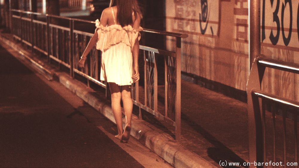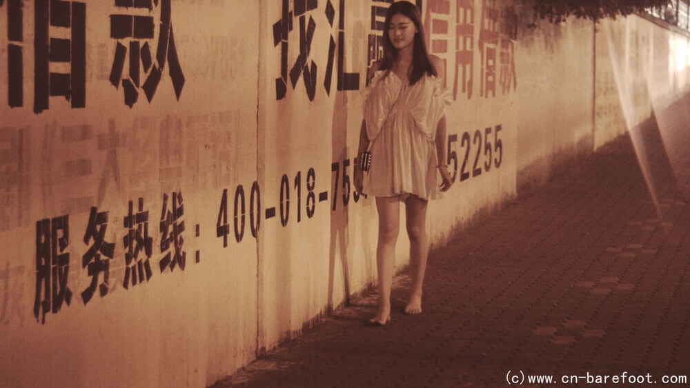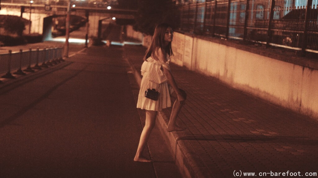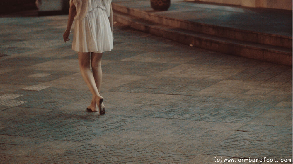 裸足が好きな綺麗な女の子にとって、深夜はとても良い選択です。夜が更けて静まり返った時、靴を脱ぎ捨て、昼間に歩いた道を再び歩き、大地が足の裏の敏感な神経を刺激するままに、思う存分に羽を伸ばします。