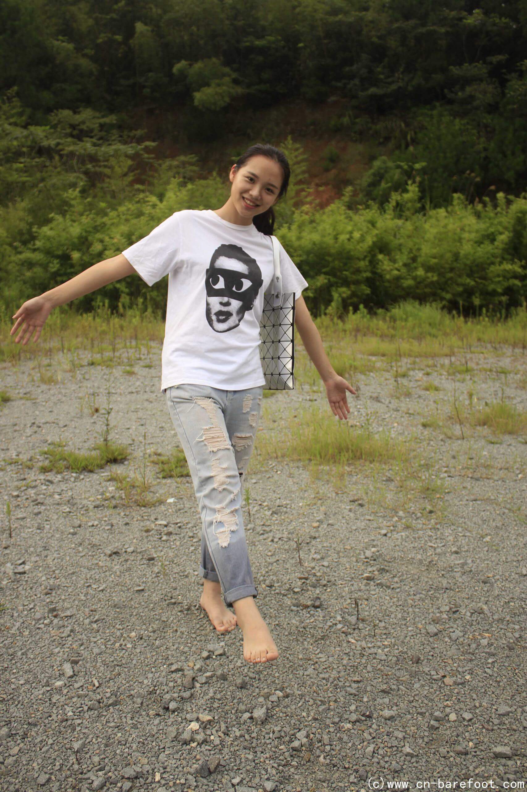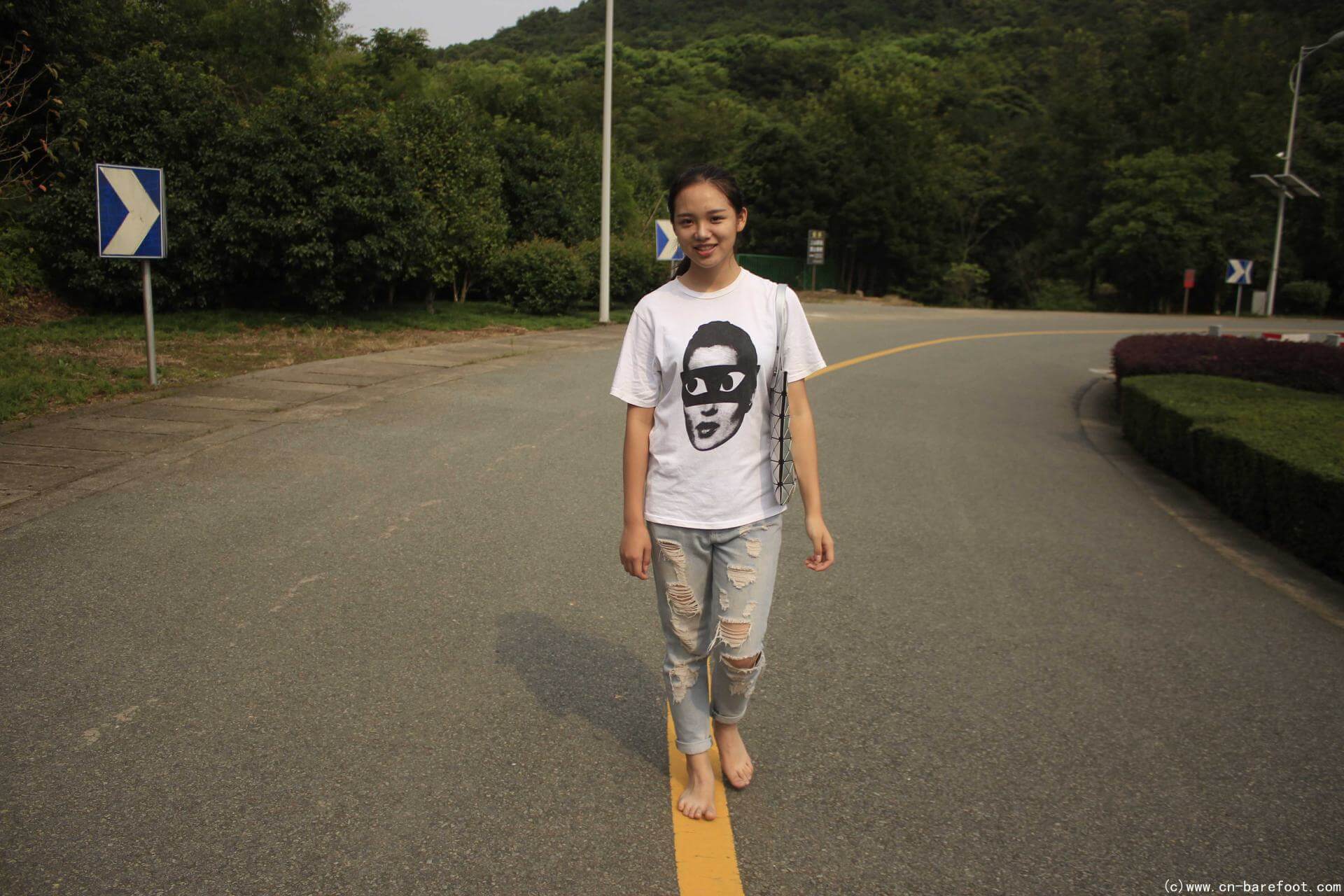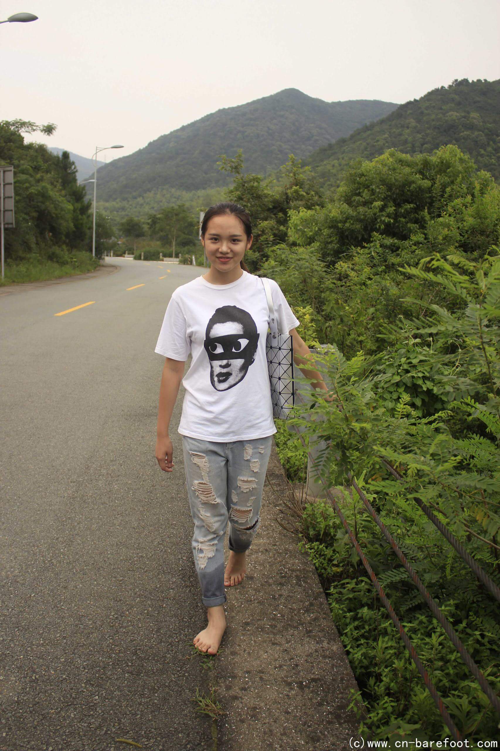 彼女は歩幅が大きく、歩くのがとても速く、私がカメラを持って追いかけるのは難しかったです。彼女が裸足で路面を歩く様子は、まるでキャンバスシューズを履いているようでした。終点に近づくと彼女は少し苦しそうに歩き、足が少し痛いと言いました。無理もありません、私も靴を履いていて足がだるくなっていましたから、哈哈。
