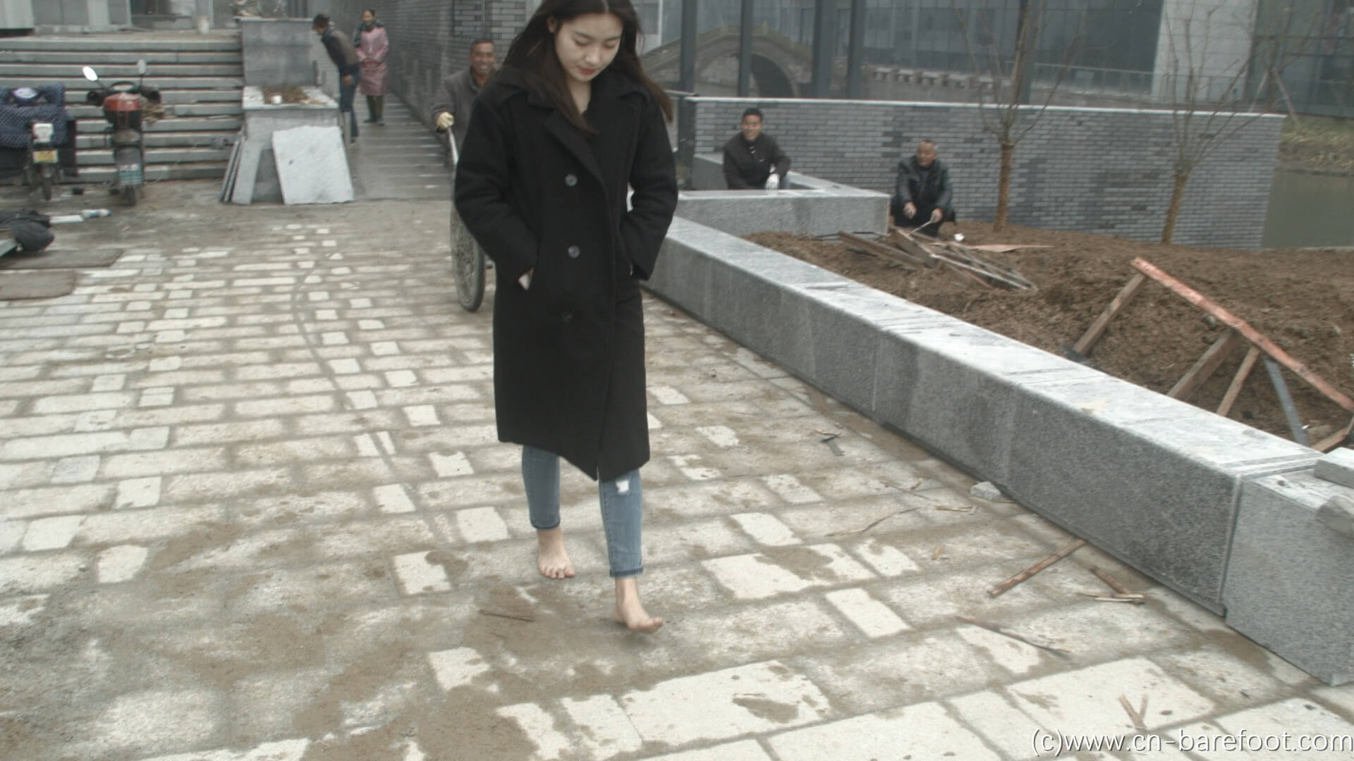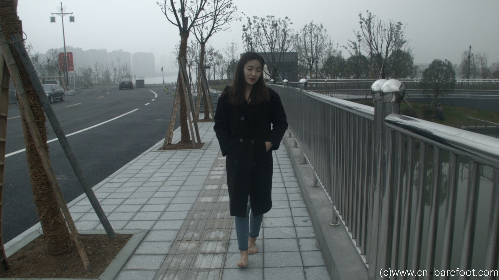 撮影場所は小霞の家の近くの公園のそばで、彼女は風邪がまだ治っていないのに、こんな寒く湿った天気の中で裸足で頑張る姿に、とても感動しました。