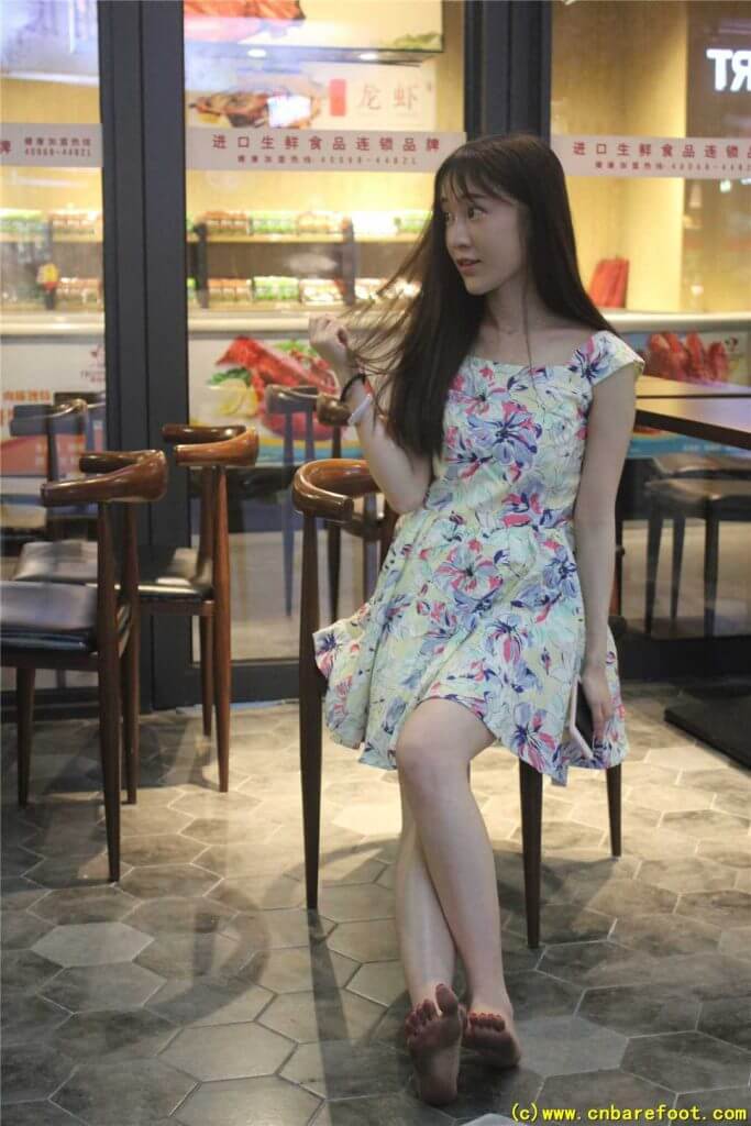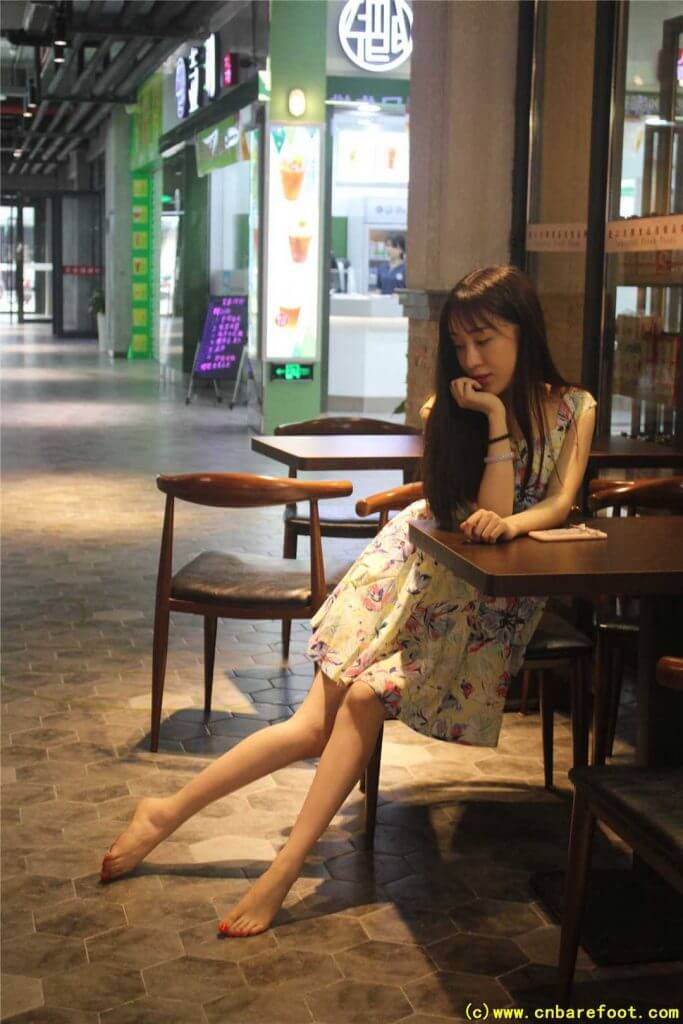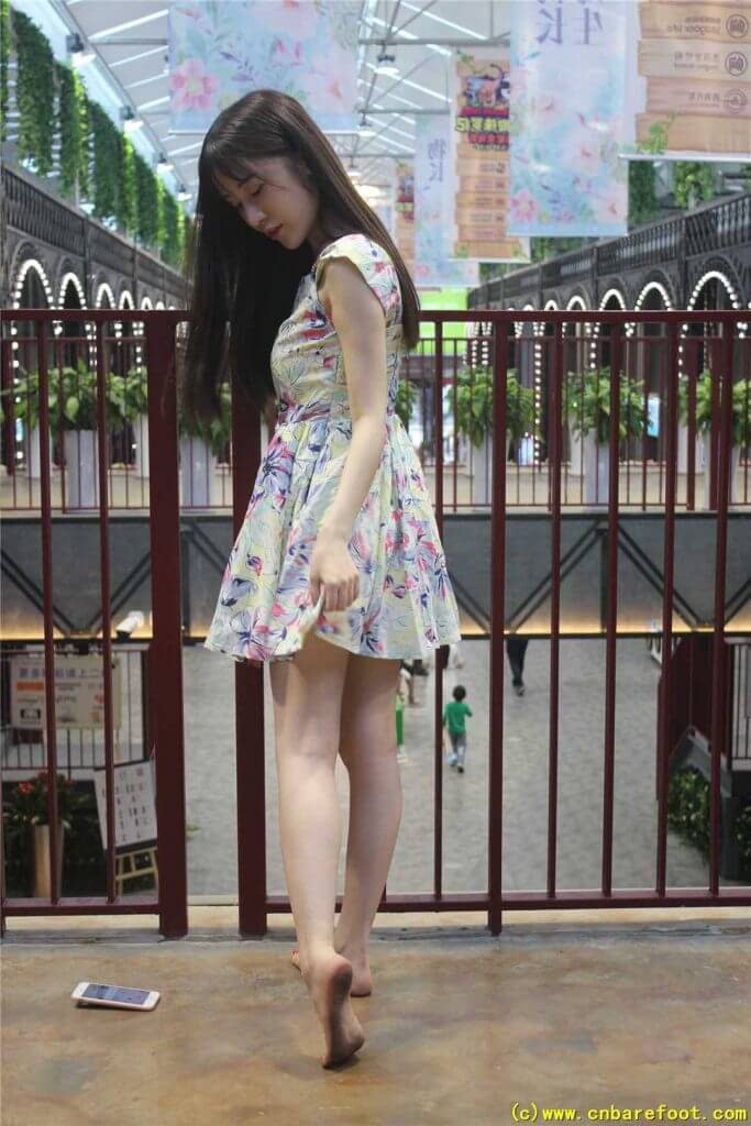 莉莉・裸足でショッピングモールを歩く