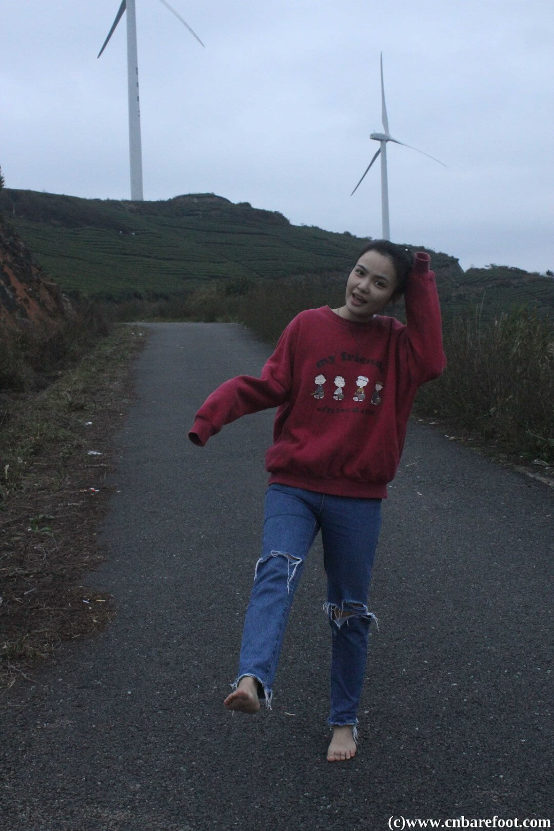 芳芳・裸足で山登り