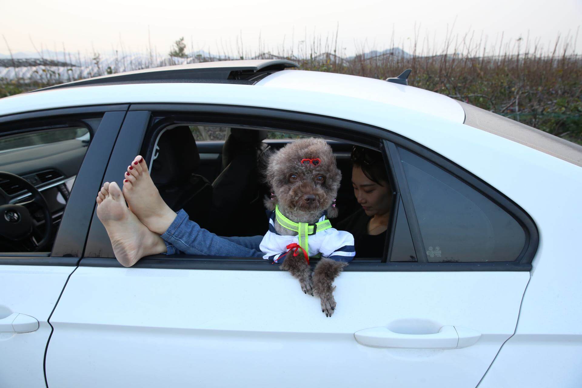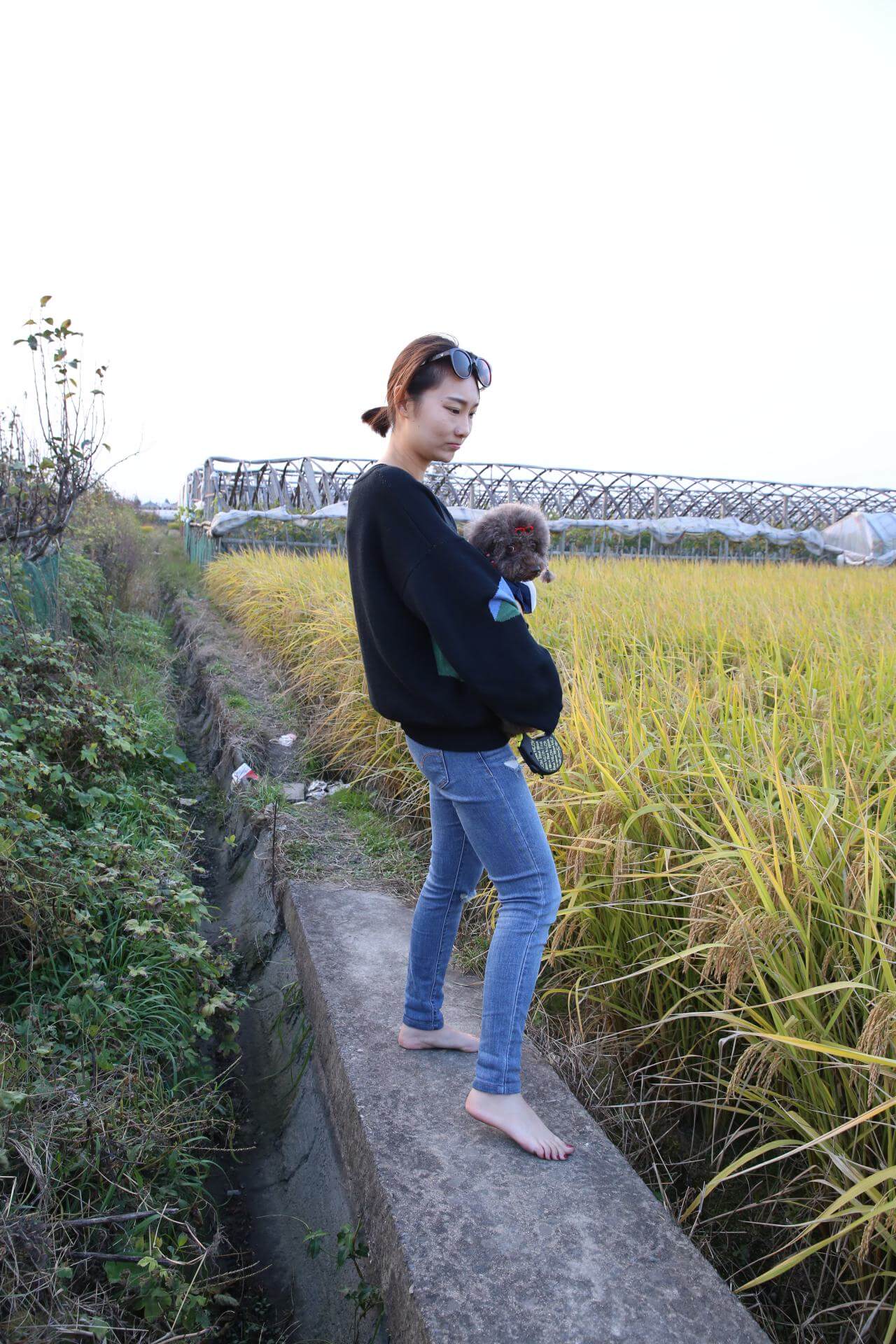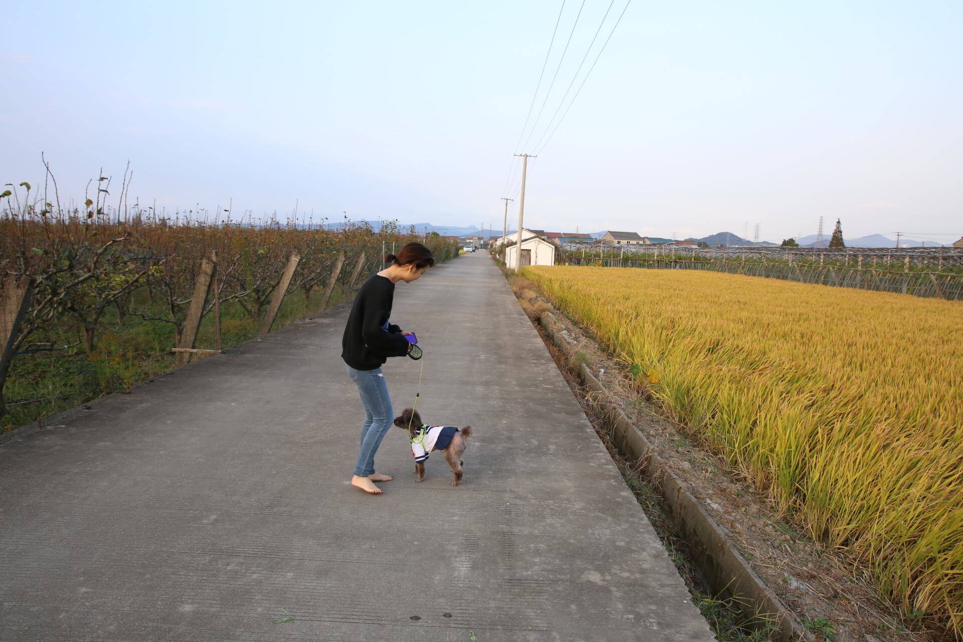 足元の小道は黄昏の余温で柔らかく、果果の一歩一歩が大地と密接に触れ合い、田舎特有の静けさと安らぎを感じている。遠くの野原は落日で黄金色に染まり、空は次第に柔らかな色彩に変わっていく。果果は子犬を連れ、黄昏の残光の中に身を置き、心は温かさと満足感でいっぱいだ。