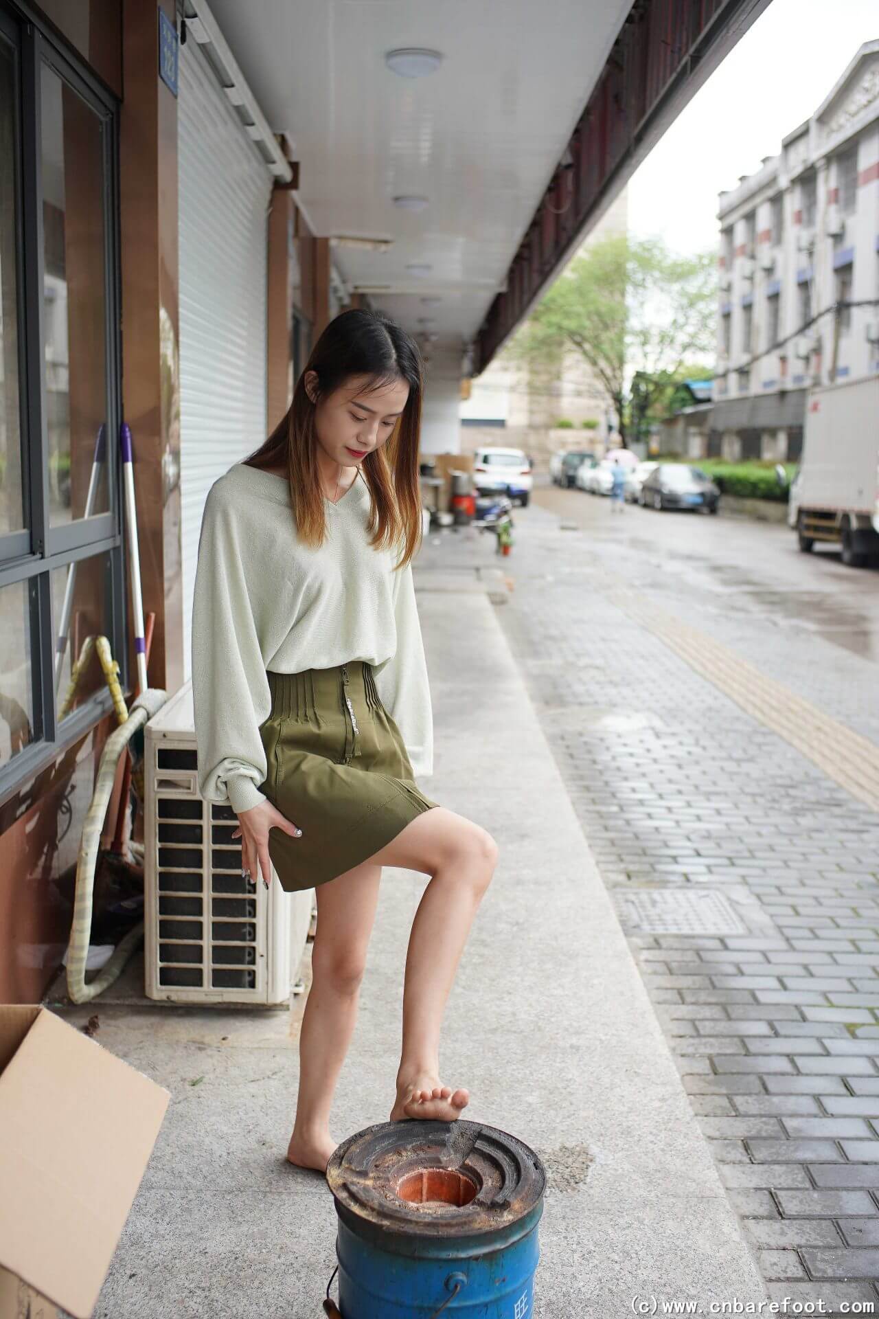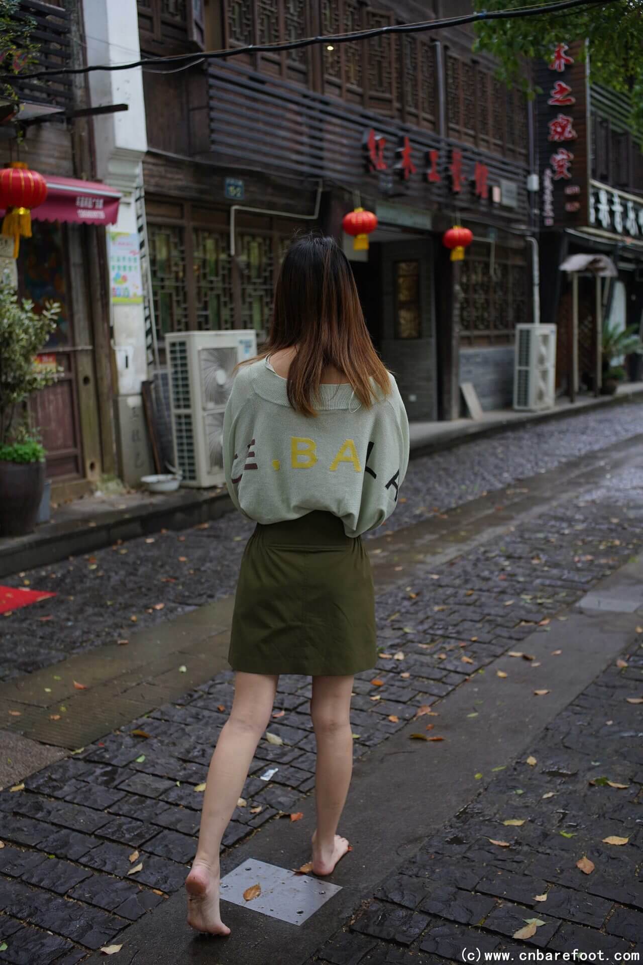 雨後の余姚で綿綿と一緒に街をぶらつき、綿綿は裸足で、道を歩くのがとても気持ちいいと感じました。