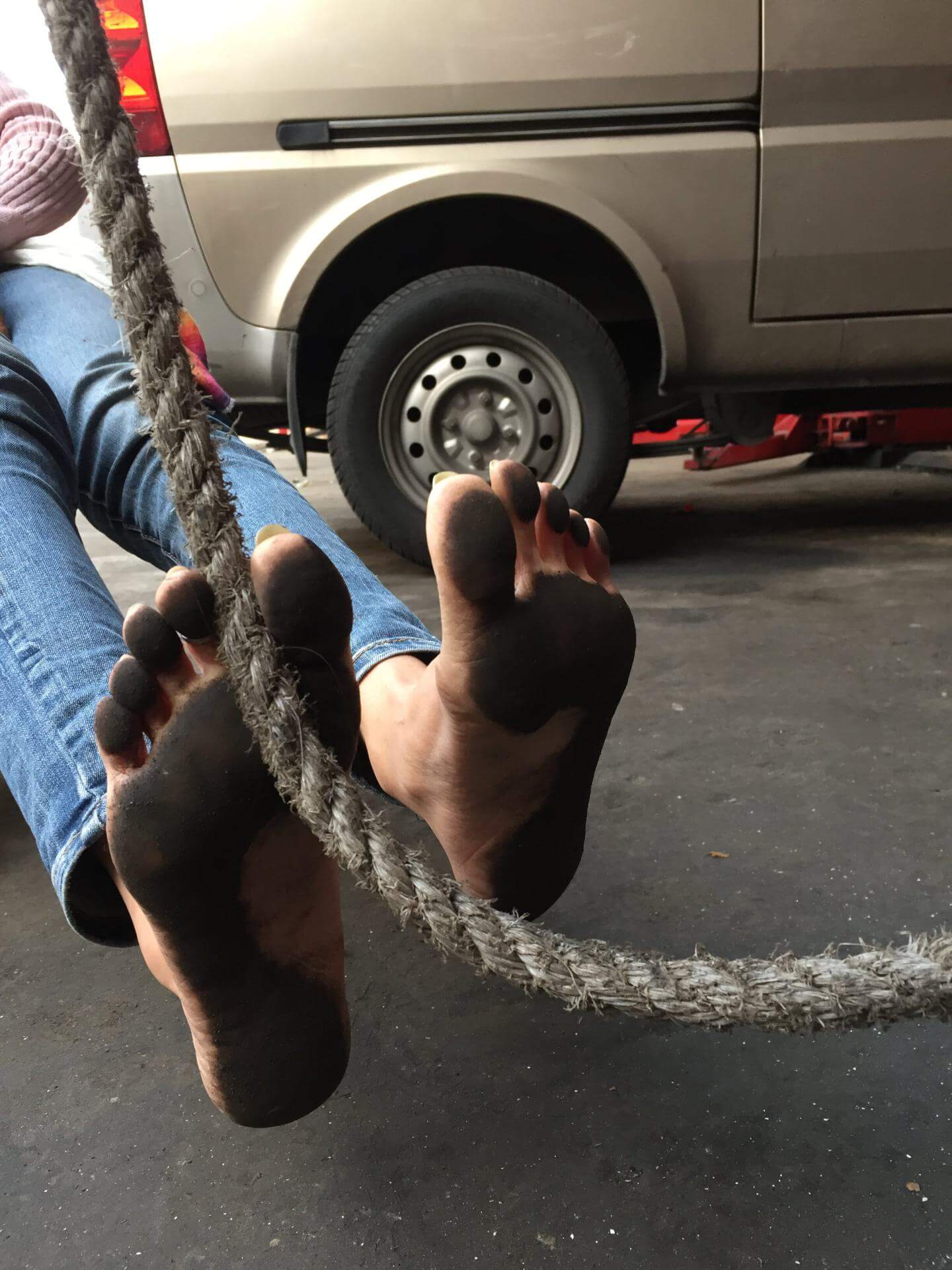 左左が裸足で自動車修理工場へ車を修理に行き、地面は油まみれで、足の裏は真っ黒。合計写真226枚(左左の雑図コレクション付き)を撮影しました。裸足運動愛好家の皆様の参考になれば幸いです。