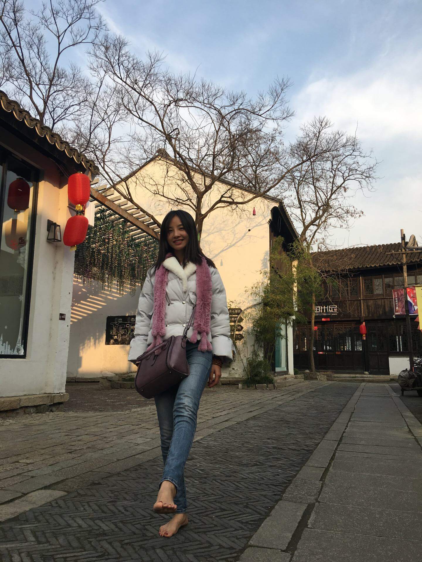 左左在枫泾古镇赤脚游玩。共拍摄照片52张(另附赠左左杂图合集),供赤脚运动爱好者参考学习。